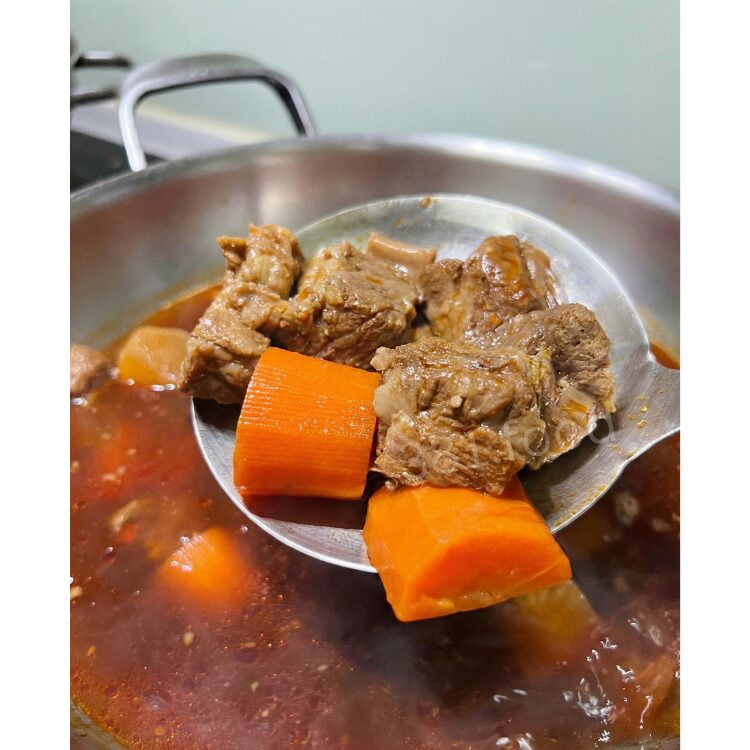 🍜家常牛肉火鍋: 由於湯頭濃度極高,建議加入大量大白菜、菇類或凍豆腐,蔬菜的清甜會與狠濃湯頭完美融合,越煮越甜、越喝越順。